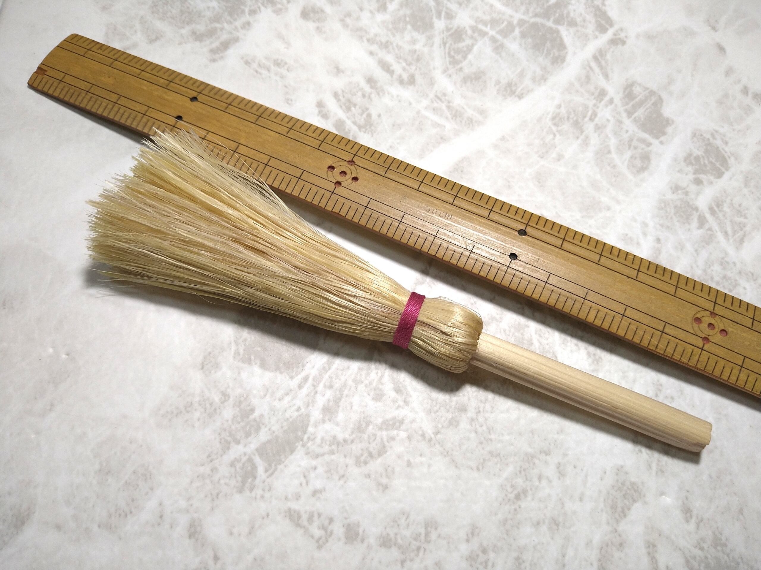 精麻と麻幹で作ったミニ箒