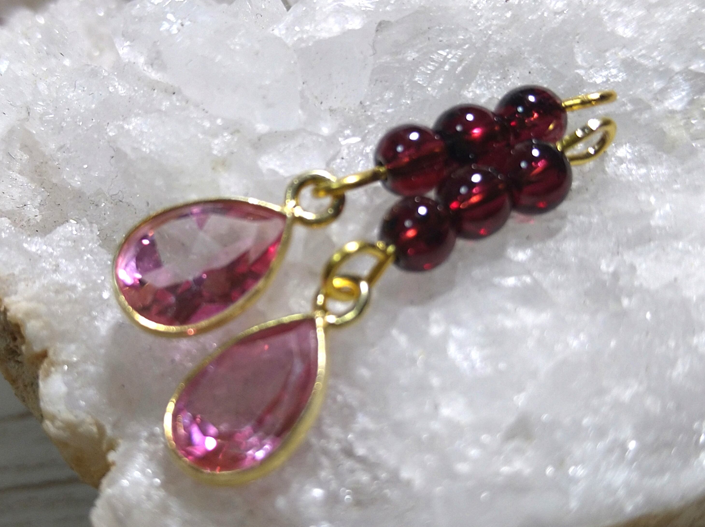 ピンクトパーズ8×6ミリ、18KGP枠付ファセットカットのペアシェイプ