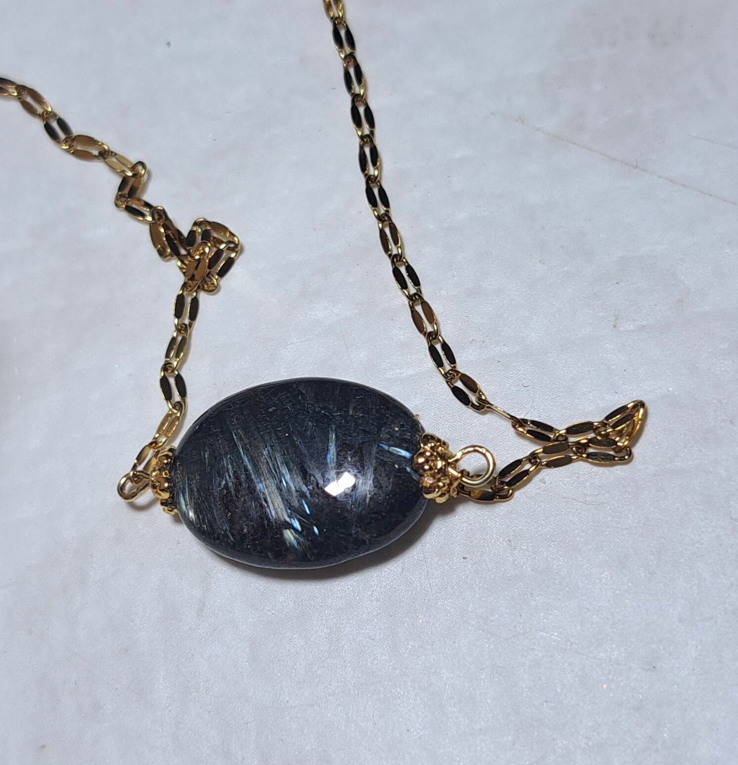 青や金のシラーが美しい複数の鉱物の複合石です。